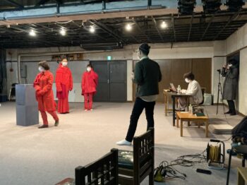 稽古場全体の様子がわかるよう定点カメラを設置し、時に演出の中谷さんやパフォーマーに近寄りながら臨機応変に撮影しています。