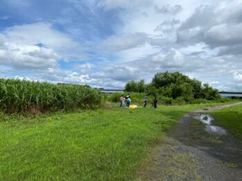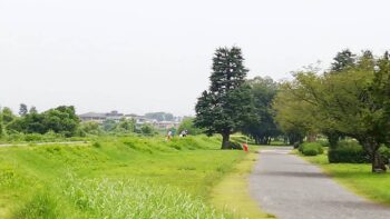この場所は、大きなグランドとその脇の川沿いに小高くなった道路があることで、