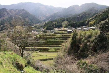 ①公演オリジナルポストカード(神社と棚田の風景の2枚組)